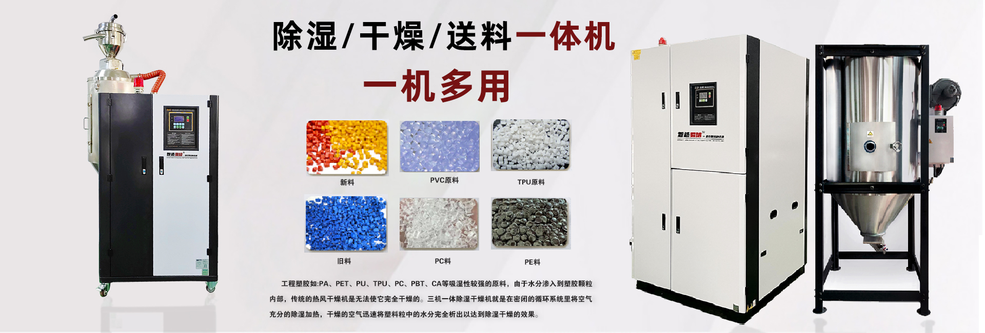 主营产品: √ 除湿干燥系列:真空除湿机、除湿干燥机、除湿干燥送料组合 料斗干燥机 烤箱 下吹式干燥机等